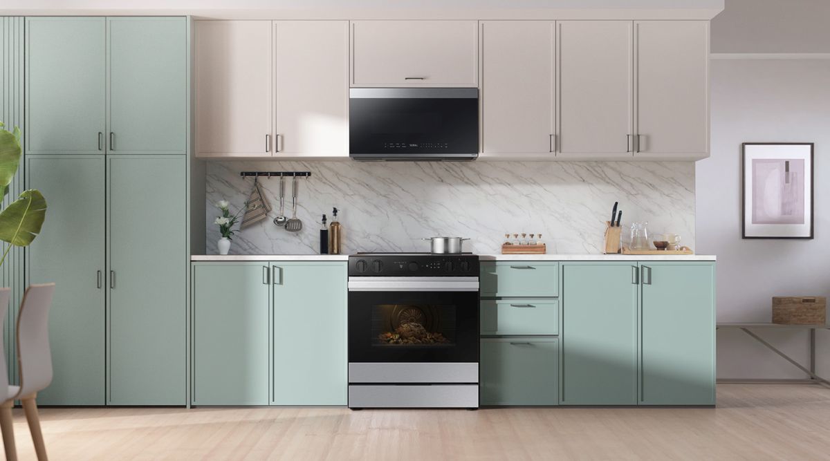 Samsung's smart electric range features an integrated Smart Oven Camera that lets you monitor your food closely and make and share time-lapse videos to your social media to show off your culinary skills. Illuminated Precision Knobs let you know if your cooktop is on from a distance and precisely control your cooktop.