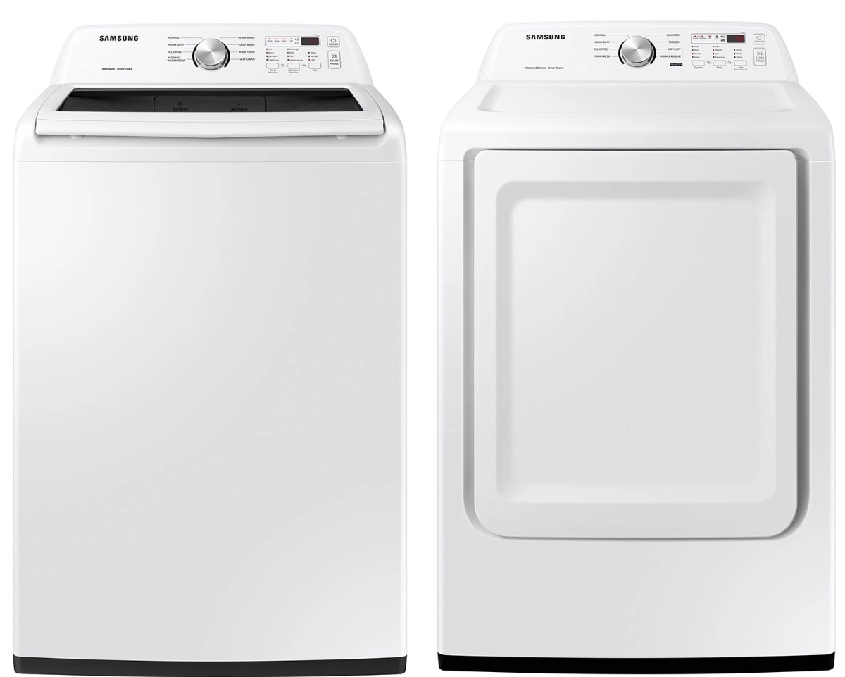 Request More InfoSamsung White Laundry Pair with a 4.5 cu. ft. capacity top load washer and a 7.2 cu. ft. capacity front load gas dryer. Read More